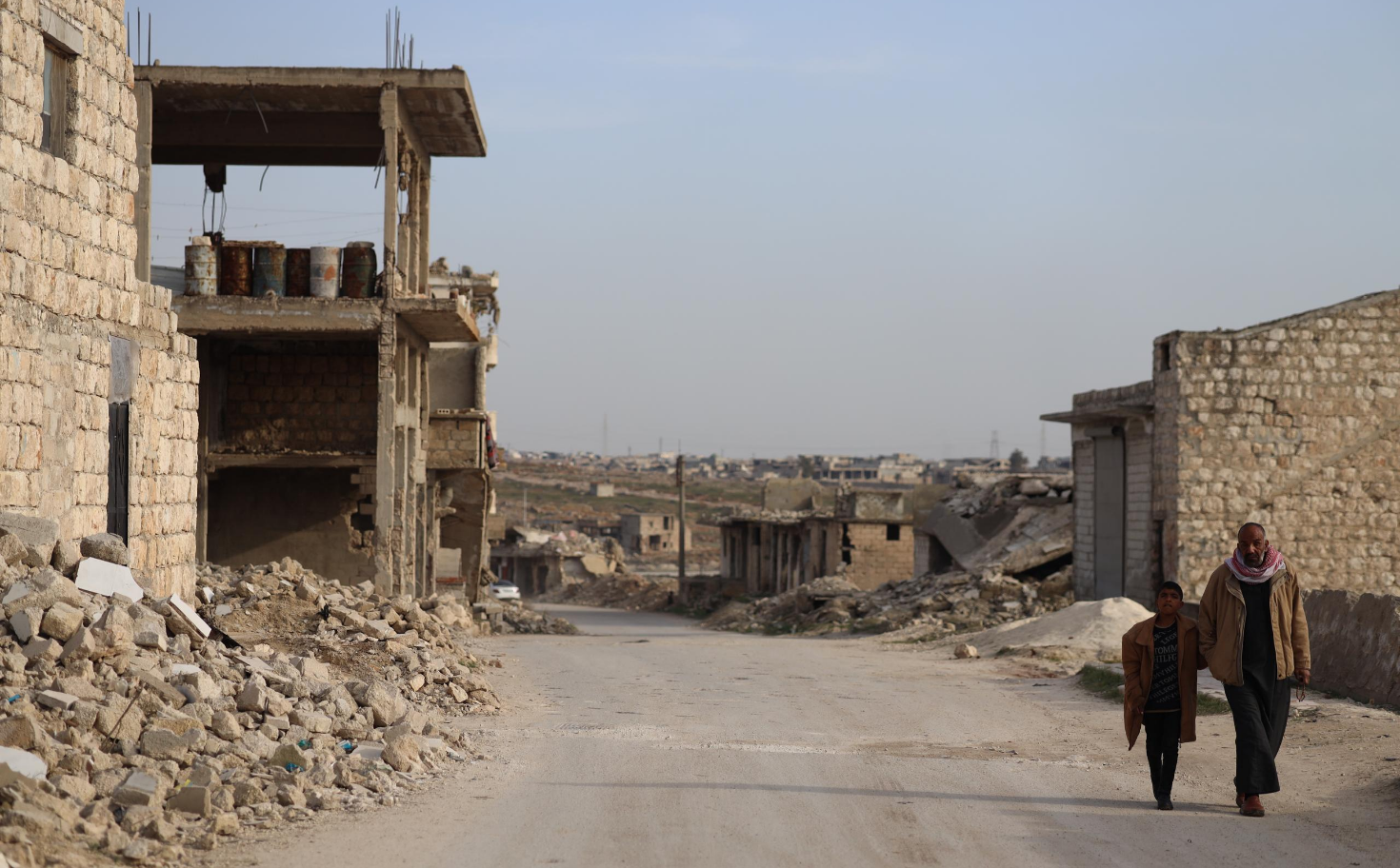 Today, much of Handarat remains in ruins. The most visible exception is a local school and administrative building run by UNRWA, the United Nations agency responsible for supporting registered Palestinian refugees. UNRWA has provided some limited services in the camp, reopening a primary school in 2024; just before the fall of the regime; establishing a small health centre; assisting with cleaning services; and, in cooperation with an NGO, installing a transformer and electricity poles in 2025 to supply power to a small section of the camp. Most of Handarat camp lacks electricity. The water supply system remains heavily damaged and provides water only two or three times a week. As elsewhere in Syria, some modest renovations – such as repairs to a local mosque – have relied on donations from Palestinians in exile.